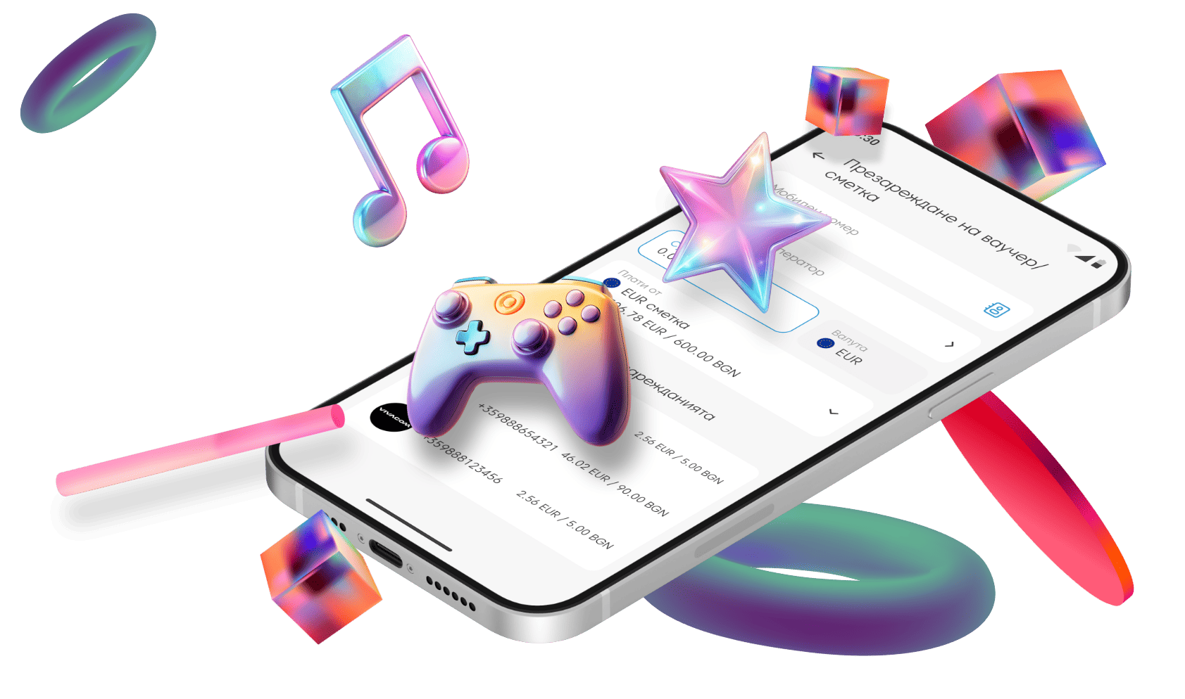Докосни се до свободата на предплатените мобилни ваучери. Без обвързване с договор – можеш да предплатиш мобилни услуги за себе си или да изненадаш свой приятел. Сумата е по твой избор. Зареждай винаги, когато имаш нужда, директно през дигиталния портфейл.